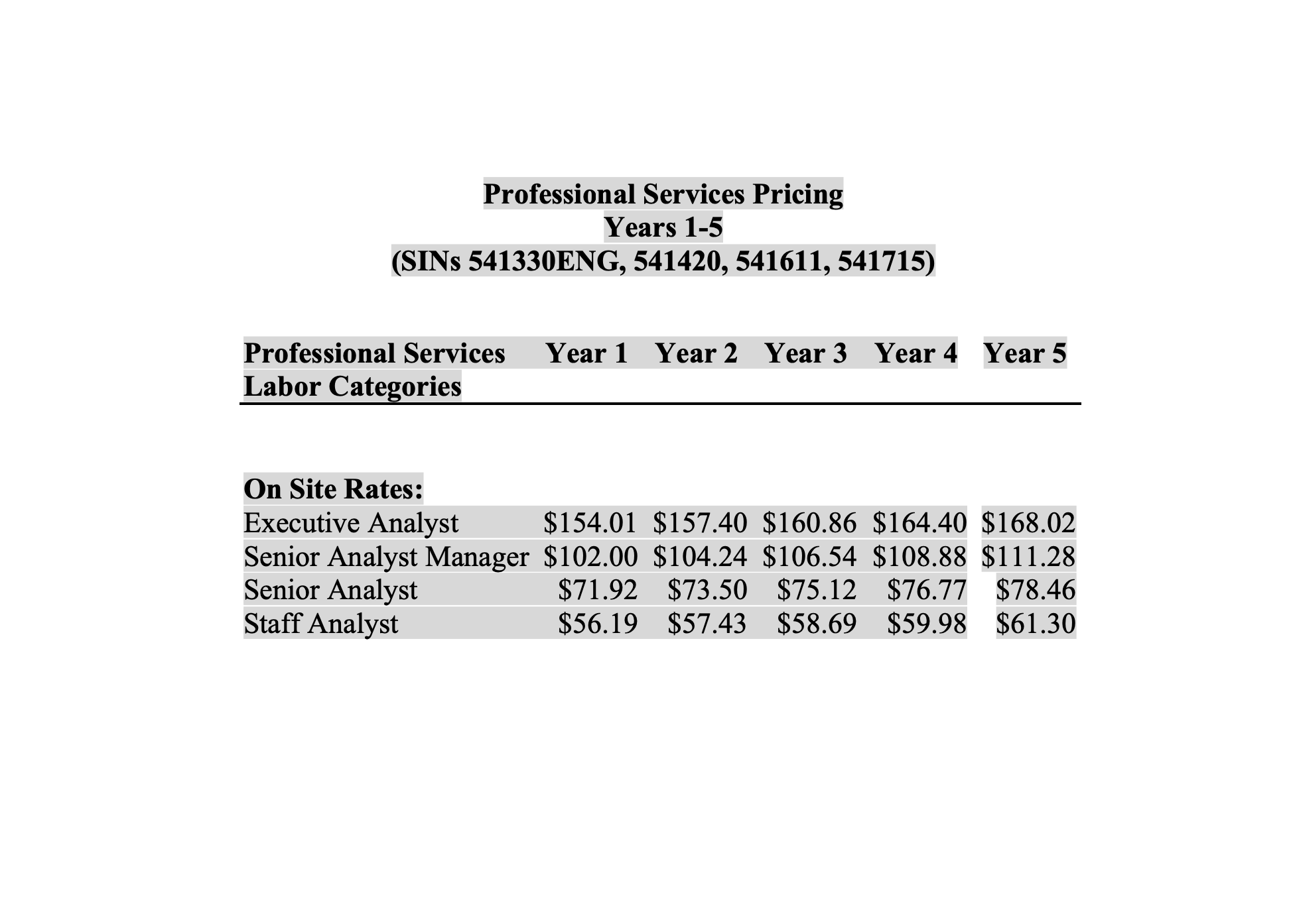 PES Labor Rates